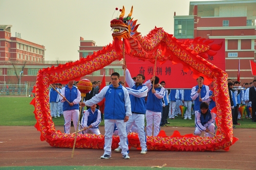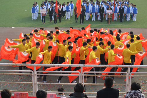 院团委书记罗富臣主持开幕式,党委书记王斌宣布运动会开幕,各系代表及运动员方队入场并带来精彩绝伦的表演。土木系带来的花伞舞,为开幕式拉开帷幕;材料科学与工程系所带来的表演则别出心裁,借一棵树的四季变化揭示了世间万物的自然更替,诠释了材料科学的实质;机械工程系的扇子舞独具匠心,好似青春的焰火点燃了他们心中的中国梦;信息工程系代表队将队伍摆成了电脑的形状,以拳皇、花式篮球、劲舞团等这些有趣的游戏,把观众带进了信息的世界;经济系带来的舞龙,无疑成为本次运动会开幕式的最大亮点,天圆地方的阵型体现了始终追求完美的宗旨,而后的系徽队形,以龙作为浮动的股票走势,新颖而中国味十足;管理系方阵所带来的混编舞蹈《together》,体现了同学们的青春与张扬;法律系方阵动感十足的健美操,将法律人的睿智与积极向上的精神的完美结合;外语系的女子方阵为大家呈现出曼妙舞姿,成为本次运动会开幕式一道亮丽的风景线;艺术系的新型广播体操,将经典与流行元素相结合,幽默滑稽的表演赢得了阵阵掌声。最后,红旗方阵以气势雄壮的步伐,高举着旗帜走过会场,为整场开幕式的表演画上了完美句号。