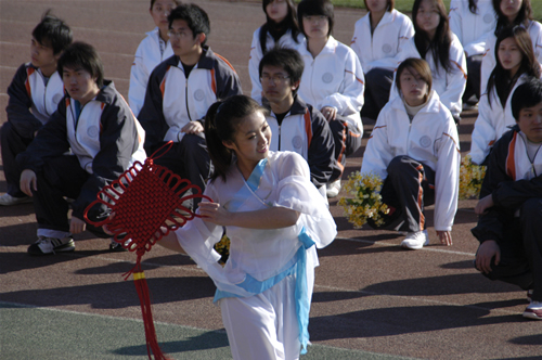 经济系方阵代表手持中国结表演舞蹈