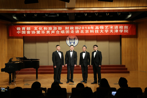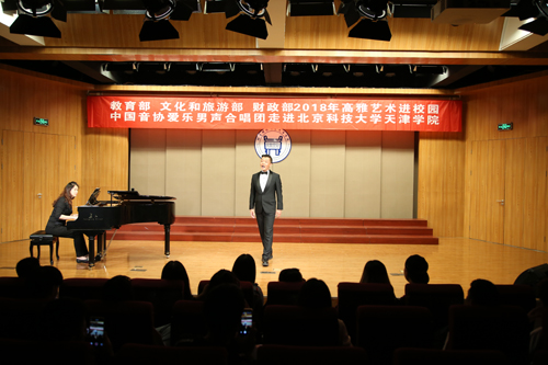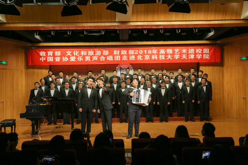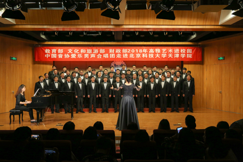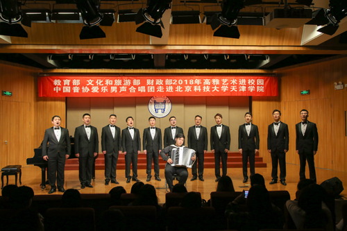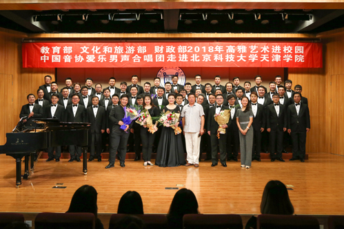 为认真学习贯彻党的十九大精神,进一步落实《教育部办公厅 文化和旅游部办公厅 财政部办公厅关于开展2018年高雅艺术进校园活动的通知》,9月17日18:30“教育部 文化和旅游部 财政部 2018 年高雅艺术进校园——中国音协爱乐男声合唱团走进beat365官网中文”音乐会在beat365弘艺音乐厅精彩上演。教务处长张建华、招生就业处长柯瑜、艺术系副主任林碧芸等与百余名师生共同观看了演出。