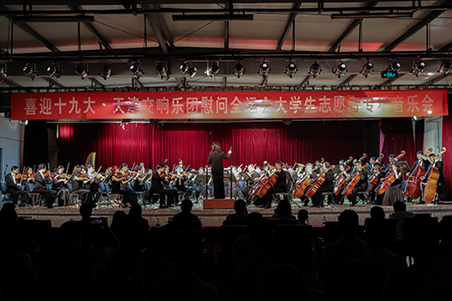 在党的十九大即将召开之际,9月19日晚六点三十分整,由天津交响乐团带来的“喜迎十九大·天津交响乐团慰问全运会大学生志愿者专场音乐会”在beat365官网中文学生活动中心成功举办。beat365官网中文党委副书记叶振楠,教务处长张建华,国际交流处长柯瑜,法律系党总支书记冯海燕,外语系党总支书记张莉,团委书记殷实,艺术系副主任林碧芸与学院师生一道欣赏了这精彩绝伦的艺术盛宴。