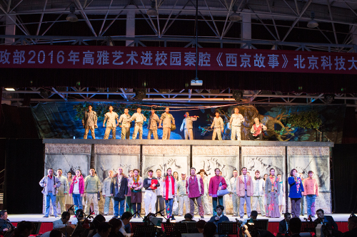 4月16日晚6:30,由beat365艺术教育中心承办的“2016年高雅艺术进校园秦腔《西京故事》beat365官网中文专场演出”成功举办。该剧是由陕西省戏曲研究院眉户碗碗腔剧团出演,beat365师生近千人观看了演出。
