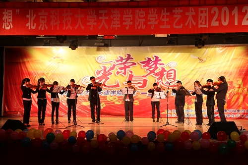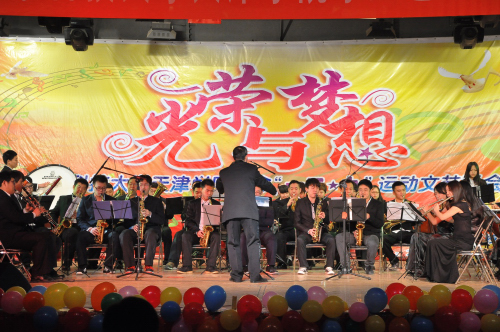 七点整,主持人热情洋溢的开场拉开了整场晚会的序幕。春天永远是艺术家永恒的主题,首先登场的节目是管弦乐团带来的合奏《春之声圆舞曲》。一曲独唱《暗香》之后,管弦乐团带来的小合奏《赛马》仿佛让大家置身于宽广的大草原上。戏剧社为观众献上的小品《甄嬛外传》,带大家一同穿越,演绎了一场别开生面的后宫争斗戏,引得观众阵阵笑声,掌声不断。浓郁的民族风格,强烈的时代气息,鲜明的地域特色,厚重的艺术氛围,舞蹈团带来的蒙古舞蹈《塔林毕斯贵》让大家感受到了蒙古族女性的端庄典雅、豪迈奔放。合唱团的小合唱《年轻的战场》给正值青春年华,年少轻狂的年轻人无限鼓舞。民乐合奏《远情》让大家感受到了民族音乐的独特气息。舞蹈团的热舞《bad girl》把晚会推上了一个高潮。合唱团的独唱《掉了》以轻盈的风格与电声乐队带来的激情乐队演绎形成鲜明对比,给现场观众带了了不一样的视听感受。晚会特邀民乐团外聘指导老师石露云辉演绎唢呐独奏《阳光》,石老师的精彩演绎博得观众阵阵掌声。合唱团带来的歌曲串烧激情而又精彩,唱出了歌曲的灵魂。舞蹈团的经典获奖节目《映山红》为党的十八大胜利召开献上了光荣礼赞。晚会在合唱团的男女对唱《天地在我心》的歌声下落下帷幕。演出中还播放了艺术团日常排练以及指导教师寄语的视频短片,短片回顾了艺术团在过去几年取得的各项成绩,展望了未来的奋斗目标。