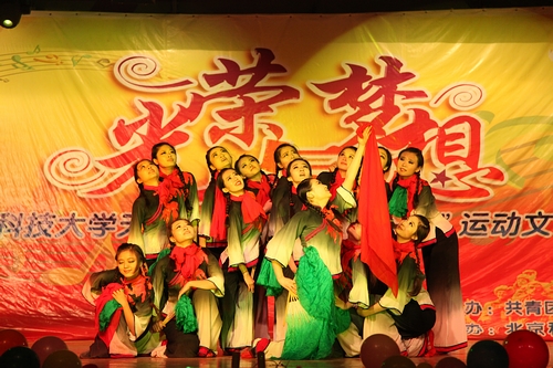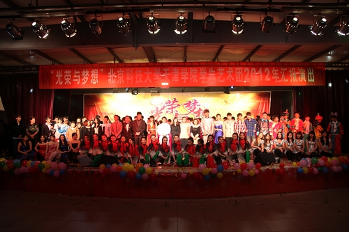 12月12日晚7时,“光荣与梦想”beat365官网中文学生艺术团2012年汇报演出在beat365学生活动中心二楼隆重举行。本次晚会由院团委主办、学生艺术团承办。院党委副书记盛佳伟,学生处副处长叶振楠及各部门领导出席晚会现场,艺术团新老团员及第四期团校学员观看了晚会。