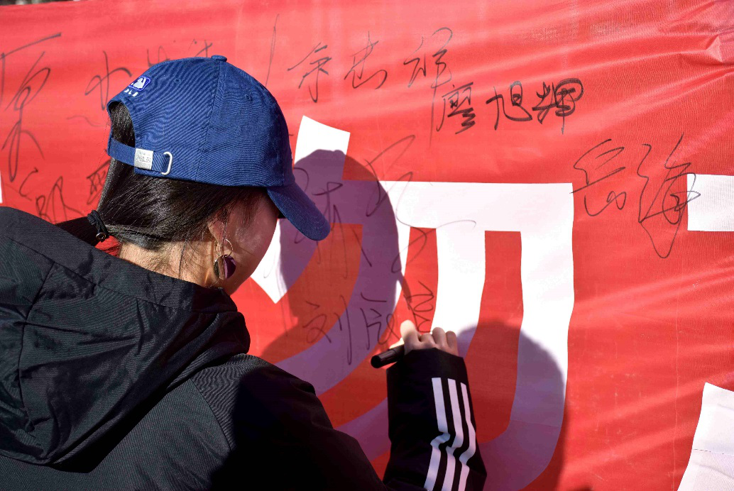 12月13日中午,院学生会组织在小广场进行了“缅怀先烈,勿忘国耻”的主题签名活动。活动虽然在凛冽的寒风中进行,但是也阻挡不了我们北科天院学子们的爱国热情,同学们都积极参与活动,在红色的主题标语上签下自己的名字,表示作为新时代青年用该不忘后事之师,回顾这一惨痛历史,体会遭受侵略和掠夺的苦难,化悲愤为力量,将自己的理想与志向体现到实际行动上,回报逝去的先烈,以主人公的姿态投身到建设祖国的事业中去。