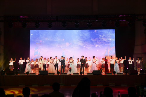 在欢快的氛围中进入第二篇章 “踏芬芳征程”,经济学院的陈映瑜等人带来的古典舞《意》,带我们走进了高山流水的幽境之中,惠风和畅,柔情似水,写尽万般风情;艺术系的赵文瀚等人带来的四重唱《心脏》,让我们产生了内心的共鸣;学生艺术团•街舞团郭璇、陆雅倩等人带来的街舞《青春有你》,活力四射;法律系盖禹彤、龚晓蕊等人的古典舞《丝路华章》,步伐柔美,舞姿曼妙;管理学院刘元礼等人带来的脱口秀《我们毕业了》,五位考研、征兵入伍、工作、出国和创业的不同毕业去向的毕业生代表们,通过真诚感人的表达,抒发了对大学生活和母校的不舍,将毕业分离的气氛推向了高潮;歌曲串烧《海芋恋》《目不转睛》《最近》《年少有为》诉说着青春记忆;学生艺术团•舞蹈团的丁薇、王懿菲等人带来的民族舞《心声》,用美妙的舞姿踩出青春的舞点,柔美轻盈的步伐犹如精灵般灵动,令人陶醉不已。晚会在辅导员们带来的节目《怀念青春》中完美落下了帷幕。