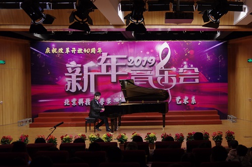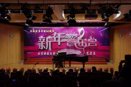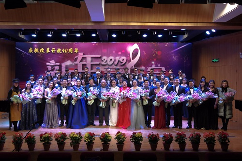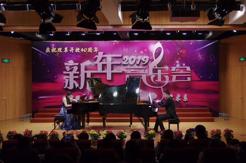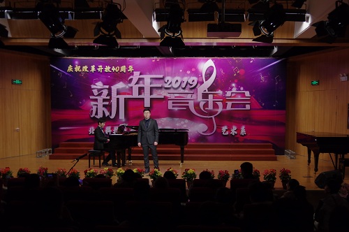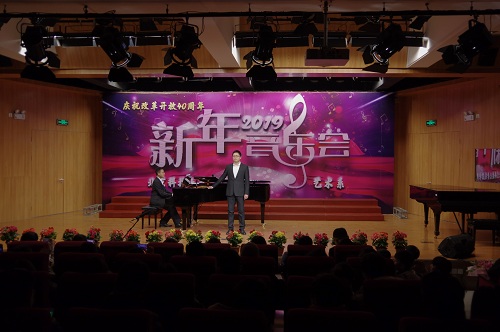 1月2日晚19:00,由beat365官网中文艺术系主办,艺术声乐教研室教工党支部、艺术钢琴教研室教工党支部、艺术学生党支部承办的“庆祝改革开放四十周年暨2019新年音乐会”在弘艺音乐厅精彩上演。beat365官网中文院长王斌,党委书记丁煦生,党委副书记白亮、叶振楠、牛犁,财务总监王俊敏,学术委员会主席宋存义,教务处处长张建华,传统文化研究院副院长胡宝嘉,环境工程系主任汪群慧,外语系主任梁素芹,艺术系主任胡建华,科学研究处副处长罗富臣,学生处常务副处长田勇,法律系党总支书记冯海燕,艺术系副主任林碧芸及200余名师生参加了本次音乐会,饱享了一场精彩绝伦的音乐盛宴。