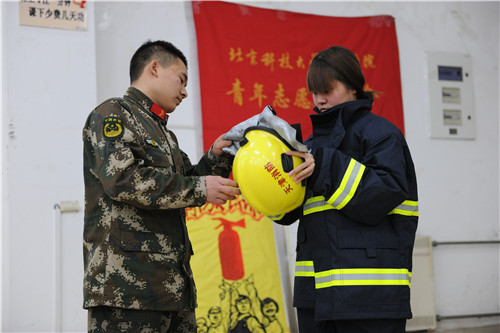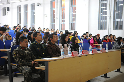 晚上7点,8教108教室,消防安全知识讲座在大家热烈的掌声中正式开始。顾队长向大家讲解了火灾发生的原因、安全用电的必要性、火灾发生时逃生技巧以及如何拨打报警电话准确提供火场信息,并在现场教授同学们如何使用灭火器。随后消防战士王巳赋现场演示并教授学生消防服及配件的穿戴方法,并邀请了几名同学亲身试穿了消防官兵的“战斗服”,穿着厚重的消防服,同学们深深的体会到了消防官兵的辛劳与不易。消防官兵的精彩讲解与演示后,风趣的知识问答环节再次调动起了同学们的热情,现场气氛热烈,同学们积极参与,知识问答环节顾队长耐心讲解相关知识。