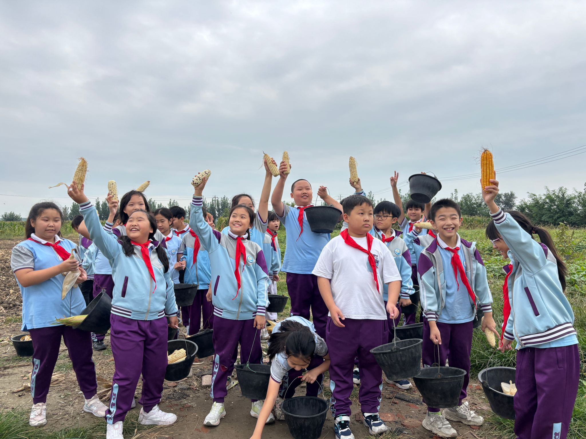 在基地的玉米种植区,金黄的玉米秆迎风摇曳。孩子们分组走进田间,亲手采收成熟的玉米。采收过程中,教师还讲解了玉米的分类、生长周期、种植要点等农业知识,让小学生们在劳动中学习科学知识。