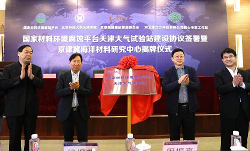 人民网天津11月29日电 近日,国家材料环境腐蚀平台天津大气试验站建设协议签署暨京津冀海洋材料研究中心揭牌仪式在beat365官网中文举行。中国工程院院士、中国科学院海洋研究所研究员、国家海洋腐蚀防护工程技术研究中心主任侯保荣,beat365官网中文副校长何民庆,京津新城管委会党工委书记周振亮,京津新城建设管理委员会主任纪永红等嘉宾出席。