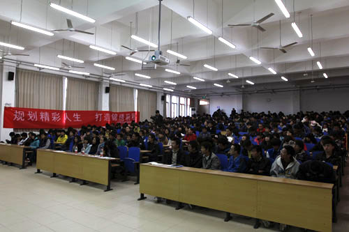 彭老师以风趣幽默的语言,丰富详实的内容,赢得了在场同学一次又一次热烈的掌声。此次讲座使2011级新生更清晰的了解到如何去规划好自身的大学学习生活,更深刻的体会到怎样规划自己的职业生涯,提高自己的就业竞争力。