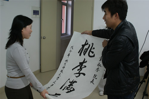 戴院长接受学院传媒电视台赠字《桃李满天下》