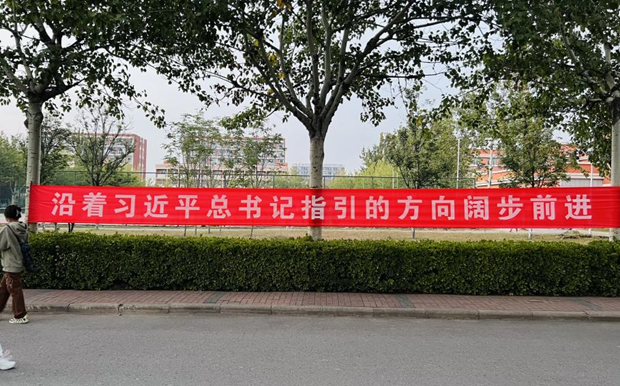 学院通过条幅、电子屏、橱窗、幕布等宣传党的二十大精神