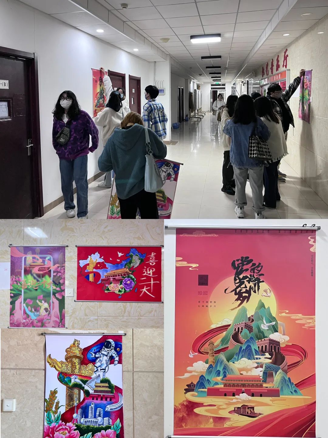 艺术学院学生第一党支部开展“喜迎二十大,追梦正当时”主题党日活动,布置艺术学院党建文化墙,装裱党支部成员手绘、板绘、海报等喜迎二十大主题作品