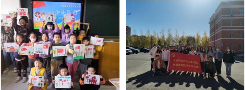 外国语学院学生党支部以知识问答、手工创作、书法绘画、歌唱表演等创新形式,与义兴里小学开展了系列红色文化宣传教育志愿活动