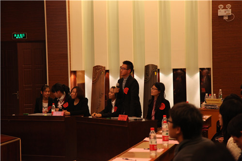11月18日晚7点,“我的国学•我的价值观”国学知识竞赛在理工馆学术报告厅正式拉开帷幕。团委书记罗富臣、外语系党总支书记何红升、团委副书记殷实,田勇、图书馆读者咨询部主任王妙丽、团委各部部长、分团委书记及二百多名学生参加此次活动。决赛分为五轮答题,分别为团队必答题、个人必答题、60秒快速问答题、观众互动答题和两轮风险题,答题结束后,如出现同分队伍则进行附加赛。比赛正式开始前,孝心社孙烨同学做“我的国学•我的价值观”主题演讲,诠释了国学与核心价值观之间的紧密联系。必答题环节开始后,参赛队员略显紧张,但很快就进入了比赛节奏,四支参赛队伍表现都十分优异,必答题结束后,院学生会泓涵队以微弱优势领先。之后,由广播站和孝心社13名同学朗诵《少年中国说》,“少年智则中国智,少年强则中国强”,慷慨激昂的声音在报告厅久久回响,激励了同学们立志成才、报效祖国,现场时时爆发雷鸣般的掌声。60秒快速问答环节,现场观众屏息凝神,在最后一支队伍答题完毕后,现场爆发了热烈的掌声,观众无不为主持人的反应敏捷和答题选手的博学多才所折服。快速问答环节结束后,院学生会泓涵队的领先优势继续扩大。观众答题环节,主持人与观众的互动稍稍缓解比赛的紧张气氛。而紧张刺激风险题环节,把整个活动推向高潮,现场时时爆发热烈的掌声为回答正确的同学祝贺,也为答错扣分的队伍扼腕叹息。两轮风险题结束后,学生艺术团民乐团的三名同学为观众献上古筝弹奏《汉江韵》,热烈欢快的曲调让同学们深深体会了中华传统文化的魅力。