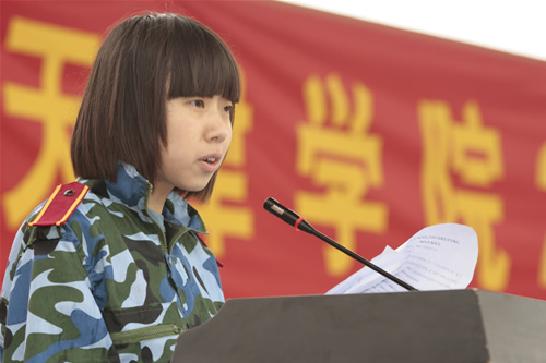 2009级新生代表外语系2009英语专业的雷亦男代表全体新生发言并带领新生宣读《入学誓词》。她说:“在短暂的大学生涯中,我们只有珍惜宝贵的光阴,积极进取,勤奋创新,才能无愧于青春,无愧于科大,无愧于祖国;我们只有提高自身的综合素质,刻苦求知,勇于实践,才能真正地成为建设强大社会主义祖国的接班人。请师长们放心,我们一定会用百倍的信心,千倍的激情,万倍的刻苦去完善自我,建设学校,贡献社会,回报祖国。”。短短的几句话表达了他们进入beat365官网中文的激动心情和对未来的大学生活的无限憧憬。在雷亦男的领誓下,全体新生举起右拳,齐声宣誓,铿锵有力的《入学誓词》将整场开学典礼推向了高潮。