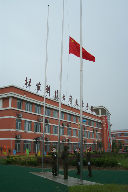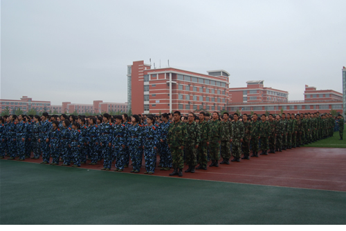 2009全体新生身着崭新的军装,英姿飒爽的列队在体育场。伴随艺术团管乐团现场演奏的国歌,国旗班将国旗缓缓升起,开学典礼正式开始。