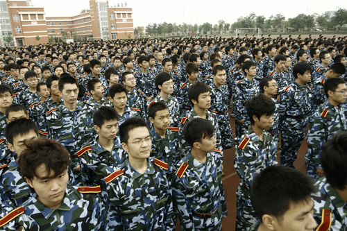2009全体新生身着崭新的军装,在体育场列队