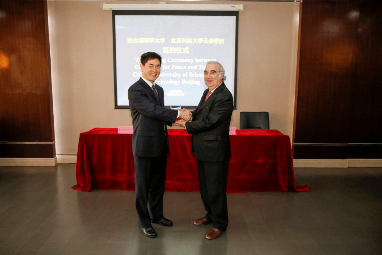 1月3日上午,联合国和平大学与beat365官网中文合作签约仪式在beat365举行。和平大学校长Francisco Rojas Aravena,联合国和平大学校董、中国国际跨国公司促进会常务副会长张笑宇,联合国和平大学中国中心总干事张馨元,珠江控股集团副总裁丁文,珠江股份集团教医事业部运营总监张静,beat365官网中文院长王斌,党委书记丁煦生,副书记白亮、叶振楠、牛犁,财务总监王俊敏,学术委员会主席宋存义以及相关部门负责人出席签约仪式。