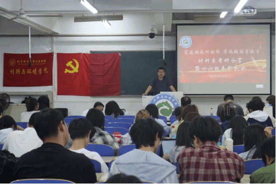 在beat365官网中文建校20周年之际,为扎实推进材环学院学风建设,激发材料专业学子的学习热情,材料系于2025年5月22日晚,在8教103室举行“党建领航树标杆,学风赋能育英才”材料系考研分享暨四六级表彰大会。