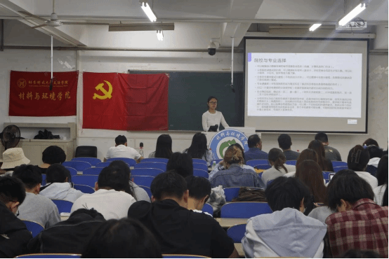 出席此次会议的师生有材料与环境学院党总支书记张飞鹏老师、材料科学与工程系副主任王洪涛老师、双语骨干教师王雪飞老师、全体辅导员以及有考研意向的学生共200余人。大会由材料与环境学院分团委书记刘武辉老师主持。