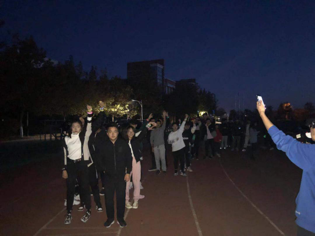 本次活动面向全系学生,共有十六个队伍报名参与。夜幕降临,所有人手上的荧光棒都变得更加显眼,远远看去就想操场上多了一条荧光的长带。随着一声响亮的“跑”,同学们便开始动了起来,“光带”也被越拉越长。热身运动后,同学们在不同圈次开展了不同的益智游戏,场面一度十分的活跃,笑声传遍了整个操场。随着第八圈的结束,活动进入了尾声,筋疲力尽的同学们围坐在操场上进行最后的合影留念。