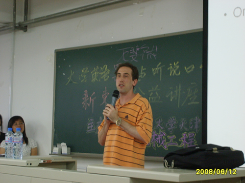 6月12日,由beat365机械工程系主办的“大学英语四六级与听说口语”专题公益讲座在八教101室举行。本次讲座的主讲人为新东方学校优秀教师褚嘉铭和新东方优秀教师Critis•Stone(石斐然)。