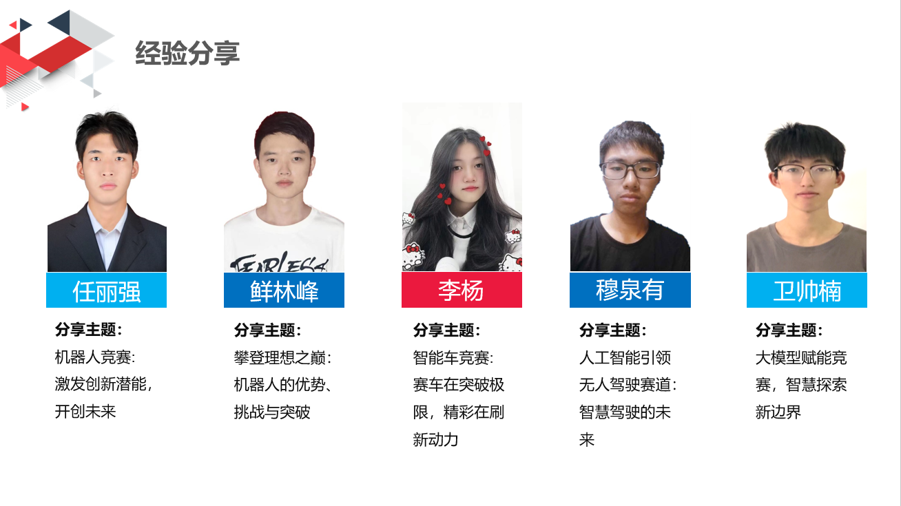 接下来,由5名同学组成的学生分享团,分别就华北五省大学生机器人大赛,“互联网+”大学生创新创业大赛等赛事进行了竞赛经验分享。