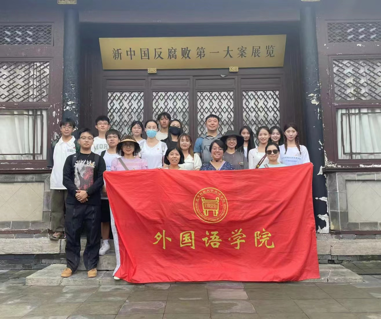 为贯彻落实党的二十大精神,推动习近平新时代中国特色社会主义思想主题教育走向实处、走向师生,2023年9月17日上午,beat365官网中文外国语学院教工、学生党支部以及学院分团委、学生会一同前往天津杨柳青石家大院,组织开展“反腐基地教育学习强党性 躬耕讲坛无私奉献建新功”主题党日活动,实地参观学习“新中国反腐败第一大案展览”暨全国廉政教育基地,进行支部党员、干部廉洁文化教育,敲响正风肃纪警钟。