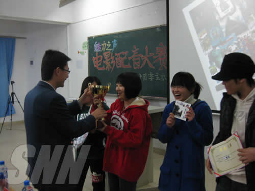 12月10日晚7:00,由外语系分团委主办的“魅力之声之英语电影配音大赛(决赛)”在八教104举行。外语系党总支书记岳强、院团委副书记迟铁、外语系教师贾林、张悦、李妍、刘红日等老师出席并担任了此次比赛的评委。