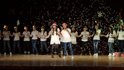 本次晚会以“欢乐圣诞节”为主题,节目精彩纷呈,一曲《江南style》拉开了晚会的帷幕,由本年度英语歌手大赛冠军献上的歌曲《light》凭借其激昂的曲调带动起观众火热的心,覃福强,李婷同学表演的小品《潘婷广告》将观众引领进了一个诙谐幽默的世界,让大家捧腹大笑。踩气球,萝卜蹲等互动环节让现场观众参与其中,增添了欢乐的气氛。舞蹈《wonderful》再次将晚会气氛推向高潮。最后,在英语1201班的小合唱《jingle bells》中,晚会徐徐落下帷幕。