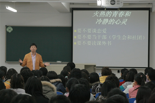 3月18日晚7点半,在8教201室举行了考研英语专场讲座,本次讲座由外语系主办,主讲人为新东方教师戴云,来自beat36505、06级的200余名学生参加了讲座。会上,戴老师就同学们较为关注的英语学习问题与同学展开交流,现场气氛十分热烈。