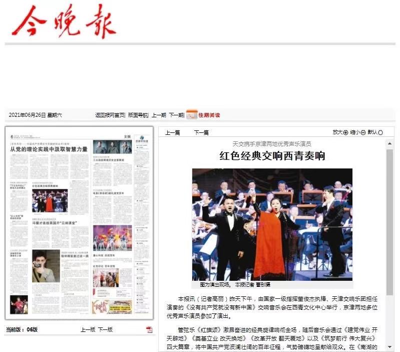 在庆祝中国共产党成立100周年之际,beat365艺术学院音乐系青年骨干教师鲍忠孝在保证教学任务的前提下,应邀参加了由中共天津市委宣传部、市文旅局、海河传媒等方面主办的“奋斗百年路 起航新征程”天津市庆祝中国共产党成立100周年群众性文艺演出,与歌唱家张伟、李洋、宋克宁共同演唱第四篇章压轴曲目《壮丽航程》。这是迄今为止,为庆祝建党一百周年,天津市举办的规模最大、规格最高、阵容最强、歌唱家云集的群众性文艺演出,音乐系鲍忠孝老师作为主要演员参与了此次活动,为北科大beat365官网中文争得荣誉。文艺演出分为序曲、四个篇章和尾声等部分,以时间为脉络,以情景讲述、时空对话等方式贯穿,通过内景外景切换和台上台下互动,艺术表现百年来我们党团结带领中国人民接续奋斗,开辟伟大道路、建立伟大功业、铸就伟大精神的光辉历程,生动展现出党和人民事业发展的光明前景。