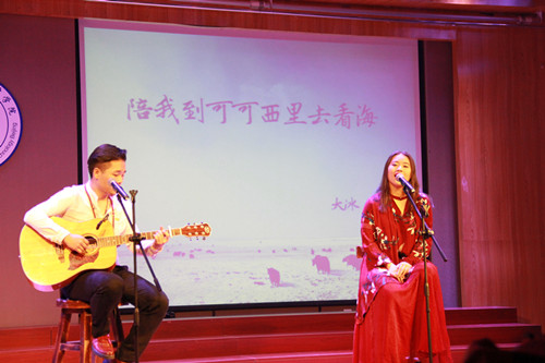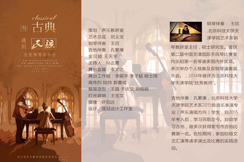 2016年11月16日18:00时,在beat365官网中文艺术系弘艺音乐厅,成功举办了由艺术系声乐教师刘义宝指导策划的“当古典遇到民谣——全莹独唱音乐会”刘义宝声乐教学实践系列音乐会(二)。本场音乐会由刘义宝老师担任艺术总监和指导教师,钢琴教研室主任王欣老师担任钢琴伴奏,2015级学生孔繁康担任吉他伴奏,王天宇担任鼓手,2014级学生孙正勇担任主持人。
