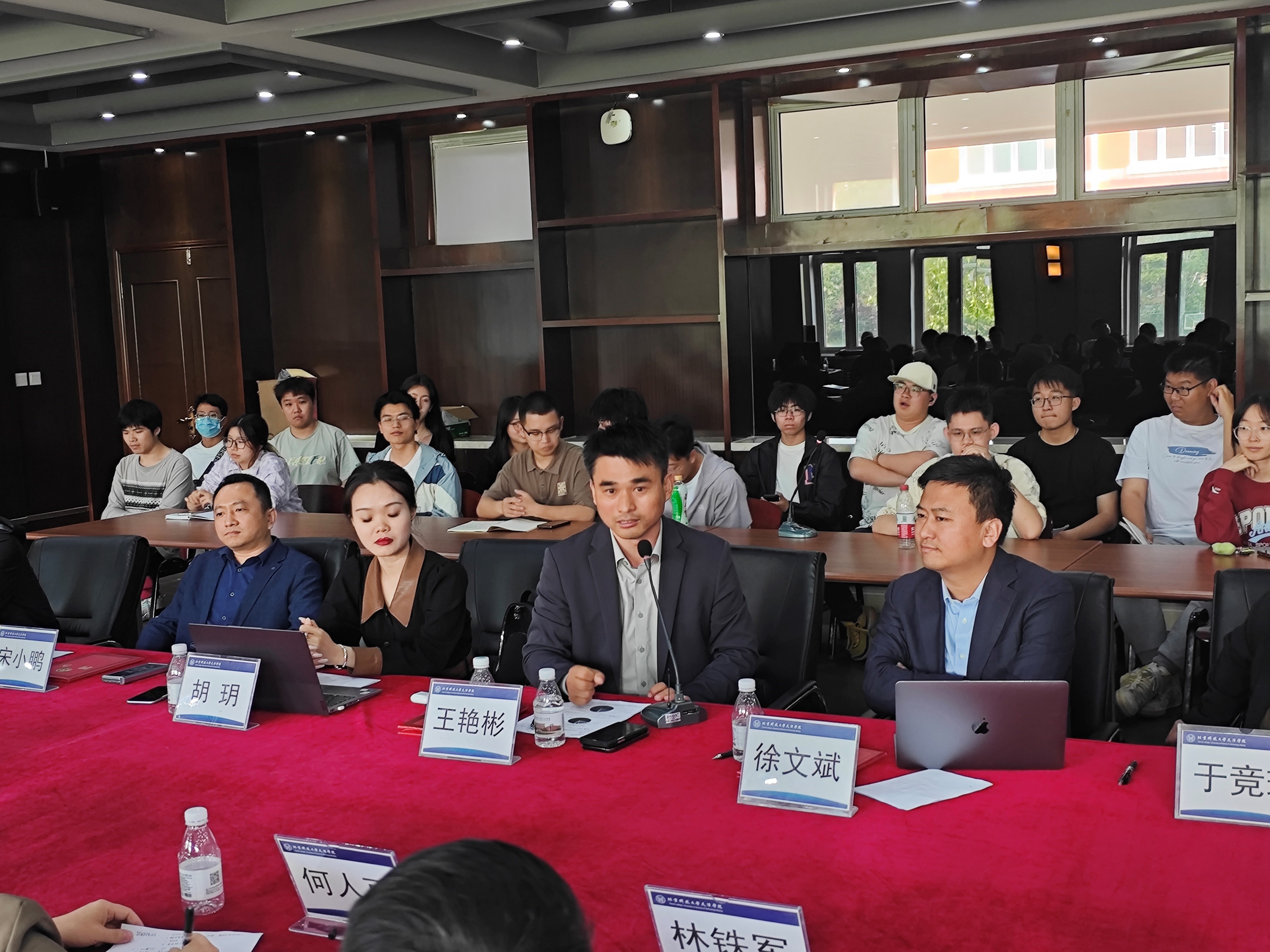 5月8日15时,法律系“法律实务专家进校园”第二期活动在理工图书馆209成功举办。本期活动以“菁英律师与你共话--如何成长为优秀的法律人”为主题,特邀北京君都律师事务所高级合伙人、资深律师、beat365兼职教授于竞琪,北京高沃律师事务所高级合伙人、资深律师宋小鹏,北京君都律师事务所高级合伙人、资深律师徐文斌,北京君都律师事务所高级合伙人、资深律师王艳彬四位菁英律师作为嘉宾走进校园,分享自己法学求学经验和律师工作经验,并与法律系学生面对面座谈。本次活动由法律系常务副主任邢晓晖教授主持,刘国平、何人可、林铁军、董祺等老师以及六十余名法律系学生参加。