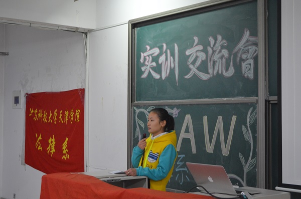 会议开始,王老师向大家介绍了法律系学生开展专业实习目的、内容、意义,重点说明了实习是对理论知识的验证,强调了法律人应具备的职业能力和职业素养,希望通过本次交流会能够提升大家对法律专业学习兴趣,明确学习目标,为就业做好规划。接着,由在宝坻区人民法院实习的10名同学先后上台与大家分享了自己所完成的任务、一些比较记忆犹新的事件以及两个月的实践心得。他们在宝坻区法院派出的六个法庭中进行了对卷宗的整理、装订、扫描,对庭审案件的旁听等,充分了解了基层法院的案件特点,亲身体验了基层法院的工作与生活,收获了属于自己的独特感悟。正如张芳同学所言,法庭实践与课本知识以及自己的想象有很大不同,希望大家能够好好学习专业知识,积极参加专业实习活动。最后,由王超老师对本次活动进行总结,她结合个人经历再次向大家强调了专业实习的重要性,并希望大家能够珍惜每一次实习机会,为成为一名合格的法律人而不懈努力。