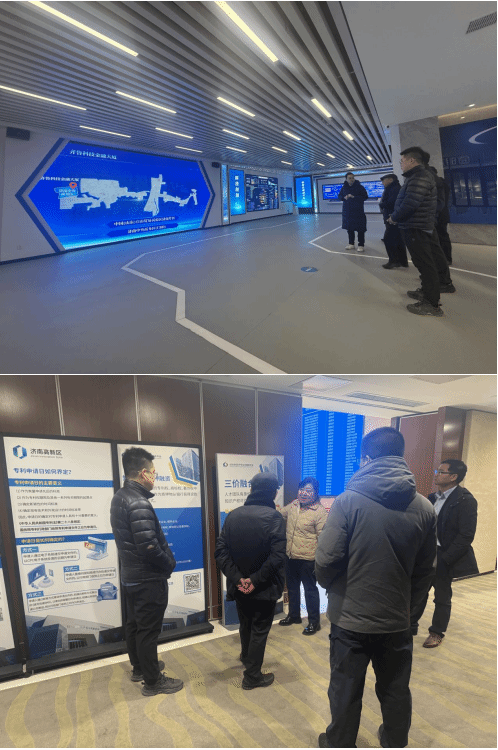 1月17日,在夏傲福董事长的引荐和陪同下,beat365官网中文一行参观了齐鲁科技金融大厦、山东科技大市场和山东省知识产权公共服务平台等单位,实地考察了山东省知识产权服务行业的最新动态。