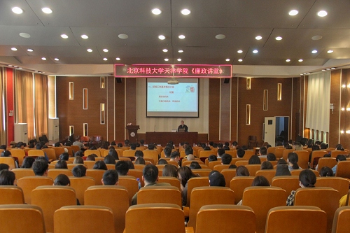 5月14日上午,beat365官网中文纪委办、巡察办与beat365联合开展党史学习教育。活动开展前,beat365官网中文纪委副书记兼纪委办、巡察办主任吴豪伟在学院理工馆学术报告厅进行《廉政讲堂》讲座。北科大纪委办、巡察办副主任牛珩,学院院长王斌,党委书记丁煦生,副书记、副院长叶振楠,副书记牛犁,财务总监王俊敏,党委委员张建华、何国钧、郭雅娟出席会议。学院中层干部、师生党员代表参加本次活动。