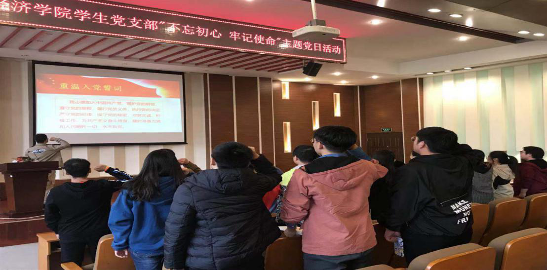 活动一开始由支部书记文勇老师带领大家重温入党誓词。倡导学生党员们在今后的工作和学习中要不断增强党性观念,坚定理想信念,践行党员标准,积极发挥党员的先锋模范作用,以“四讲四有”合格党员标准严格要求自己,不忘初心,砥砺前行,以实际行动为党旗增光添彩。