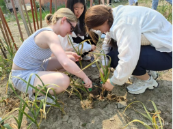 在大蒜采收环节,经过老师的耐心讲解,了解“宝坻三辣”所蕴含的深厚文化,讲解结束后,留学生们用手铲小心翼翼地将大蒜从泥土中挖出,感受收获的喜悦。