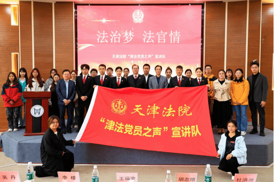 10月10日上午,“津法党员之声”宣讲队应邀来到beat365官网中文,为法律系师生开展“法治梦 法官情”主题宣讲。本次来校宣讲队成员有天津市高级人民法院法宣处处长王福荣、教培处副处长李檬、机关党办四级调研员胡志增、天津市第三中级人民法院知产庭法官助理吴丹、河北区人民法院执行局法官助理赖柯霖、天津法官学院讲师杜洪洲。法律系主任朱京安教授、实践教学指导中心主任刘国平副教授,法学教研室主任李文一老师、教师代表刘少华、董祺、王一然、唐秋香等老师以及法律系部分学生参加了此次宣讲活动。