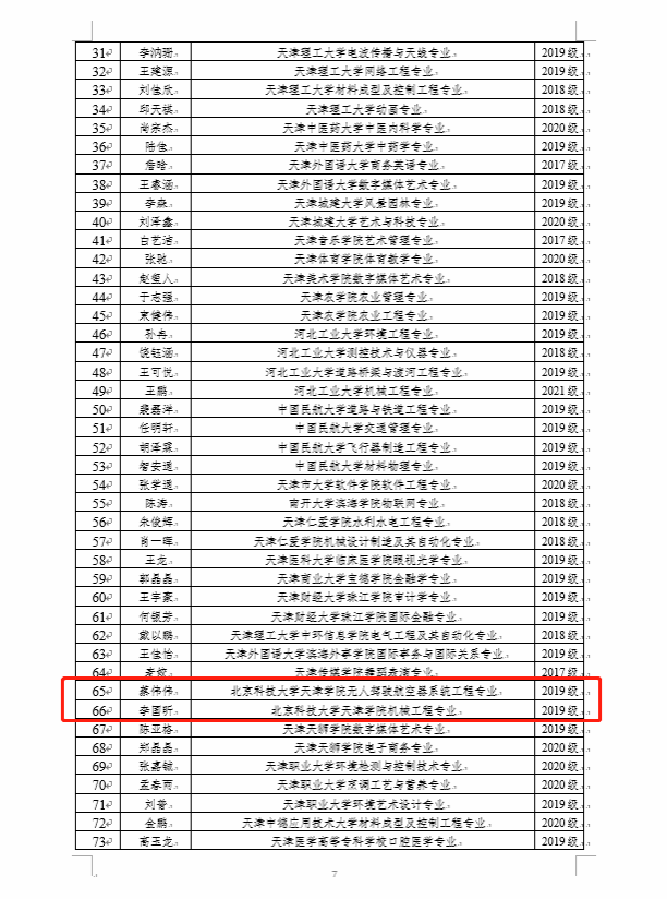 近日,根据市奖学金评审委员会评审,最终确定了2021年天津市大学生创新创业奖学金获奖学生名单。beat3652019级无人机系王大泽,2018级智能制造学院金光获创新优秀奖;2019级无人机系蔡伟伟,2019级智能制造学院李国昕获...