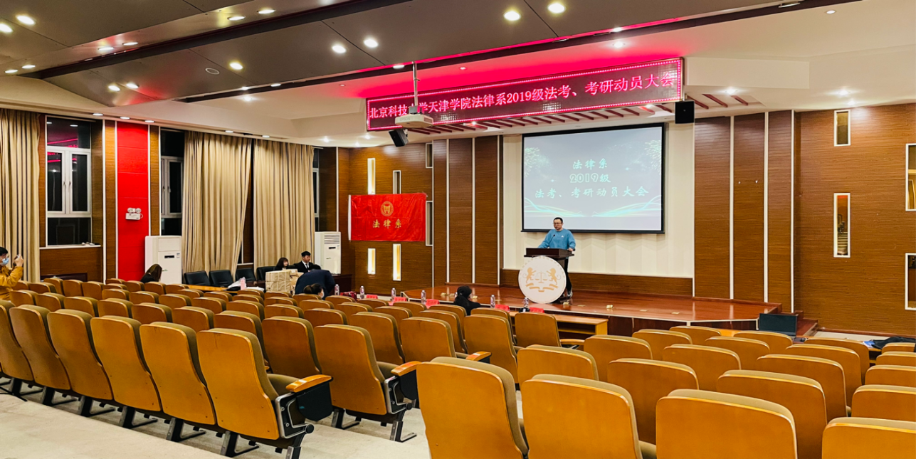 10月21日18时法律系在理工图书馆报告厅成功举办了“法律系2019级法考、考研动员大会”。 出席此次讲座的嘉宾有法律系常务副主任邢晓晖,党总支书记张莉、中国人民大学法学博士宋光明老师、中国政法大学硕士金美文...