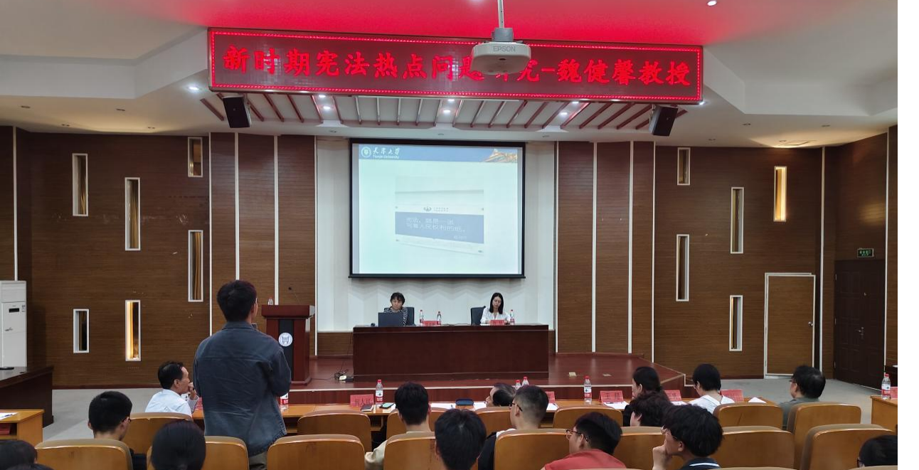 9月27日晚,法律系法学论坛系列讲座第一期活动如期举行。本次论坛邀请天津大学法学院博士生导师魏健馨教授,为师生们带来题为“新时期宪法热点问题研究”的专题讲座。讲座由法律系主任朱京安教授主持,陈慧副教授担任...