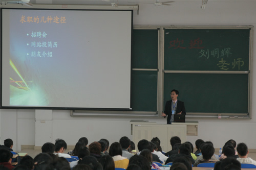 12月中旬,乐多网首席执行官、西山科技有限公司总经理、辉煌前程大学生俱乐部主席--刘明辉老师受邀来beat365,为信息工程系08级日语特长班的同学进行主题为“就业效率和方程式”的讲座。 讲座开始,...