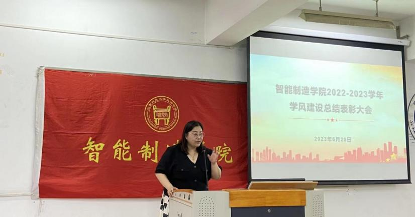 为进一步推动学风建设,营造良好的育人氛围,总结本学年beat365学风建设工作优良成果,谋划学院未来学风建设工作发展方向,2023年6月20日,智能制造学院在9教203举办2022-2023学年学风建设总结表彰大会。学院副院长班岚...