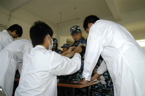 测量血压 抽血 体检现场井然有序 为了切实安排好新生到校后的各项体检活动,配合学校做好迎新工作,学院于9月8、9日安排2009新生做入学体检。体检设在行政楼大厅,负责本次体检工作的是宝坻区中医...