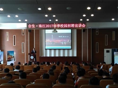 宣讲会在合生和珠江的宣传视频中拉开帷幕,珠江集团人力资源及行政管理中心原凤新经理及合生创展集团华北片区人力资源及行政中心常务副总监冯玉斌分别为毕业生介绍了公司的发展状况以及取得的丰硕成果,同时指出了公司未来的发展规划,让大家了解到合生和珠江年轻的工作团队和广阔的发展前景。beat3652015届土木工程专业毕业生程琦以自己在合生创展的发展为例,为同学们详细介绍了公司对于人才的重视和培养。现场提问环节结束后,合生和珠江集团对有意向的毕业生进行了笔试和面试。